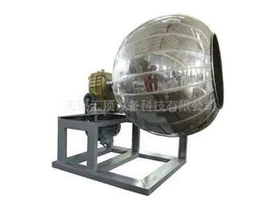 为使芯片尽快在其表面均匀涂上包衣结晶,并达到抛光目的,须先对锅内芯片分次喷糖浆,再通过锅体顺时针旋转,使糖衣片在锅内翻滚、磨擦、研磨,使糖衣均匀。同时向锅内通入热风,迅速除去药片糖衣表层水份,获得包裹均匀、光滑的糖衣片。本机是糖衣工艺的常用设备,以稳定的锅体线速度旋转,使药片在锅内形成抛物曲线,达到糖衣层厚薄均匀,色泽光亮,不发生麻点的工艺要求。