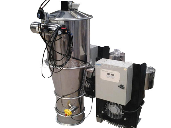 真空上料机是用旋涡气泵抽气,使吸料嘴进口处及整个系统处于一定的真空状态,粉粒料随同外界空气被吸入料嘴,形成料气流,经过吸料管到达料斗,在料斗中进行气、料分离。分离后的物料进入受料设备。送料——放料是通过气动三通阀不断地开、闭来完成的,而气动三通阀的开闭是由控制中心来控制的。