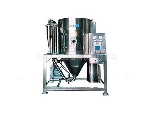 空气经过过滤和加热,进入干燥器顶部热风分配器,热空气呈螺旋状均匀地进入干燥室。料液经干燥室顶部的高速离心雾化器,(旋转)离心喷雾成细微的雾状液珠,与热空气并流接触,在短的时间内干燥为成品并下落。成品连续地由干燥塔底部和旋风分离器中输出,废气经除尘器由引风机排空。